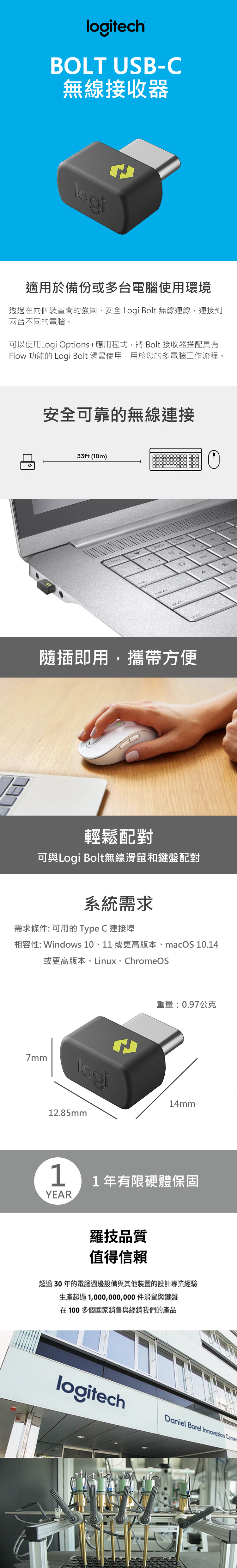 羅技 BOLT USB-C 無線接收器