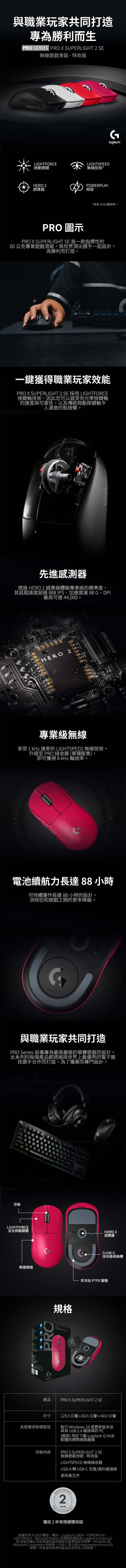 羅技 PRO X Superlight 2 SE 無線輕量化電競滑鼠-特攻版★桃粉
