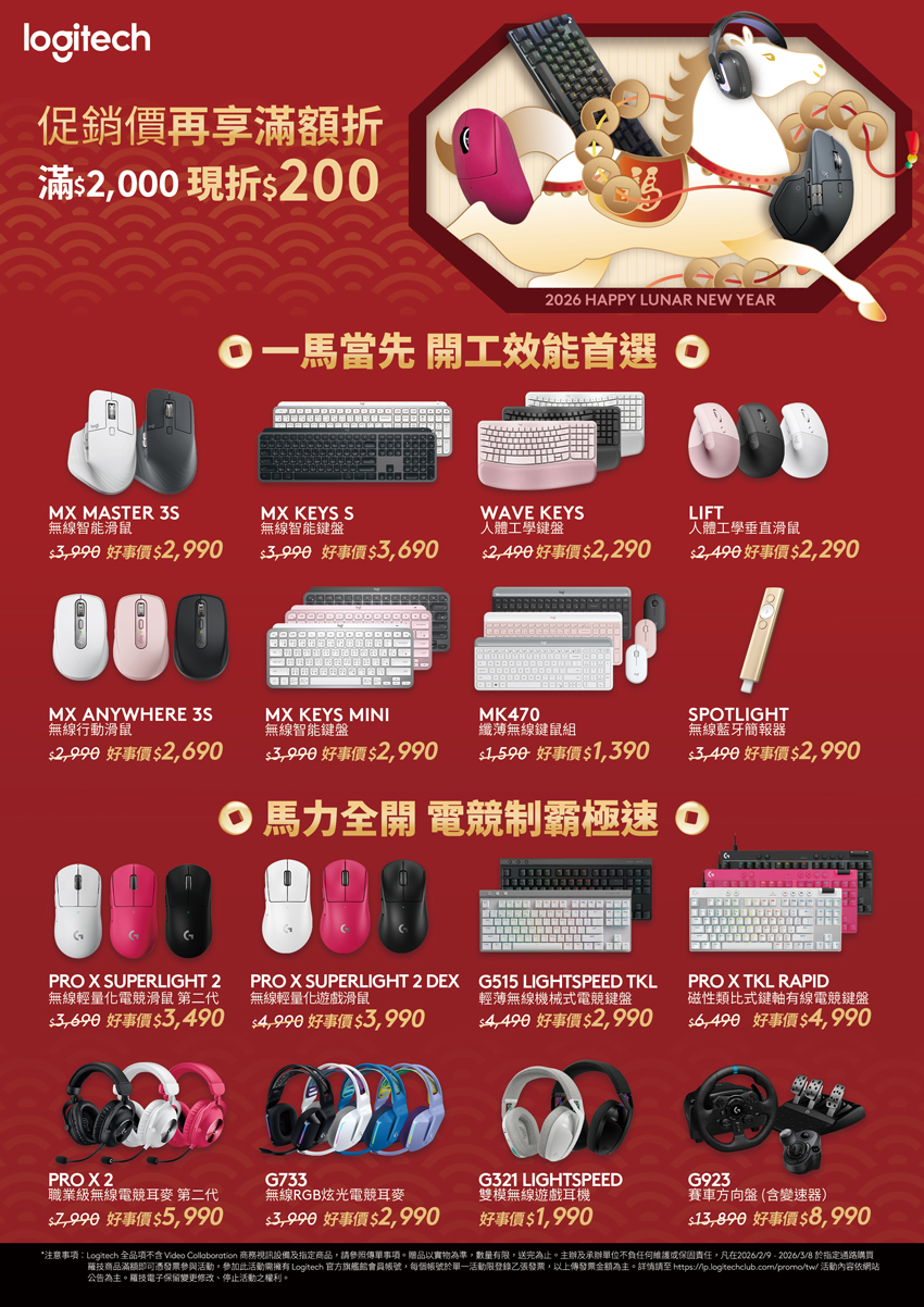 》指定商品:MX Master 3s、MX Anywhere 3s、MX Mechanical、MX Mechanical Mini、 MX Master 4 、MX Master 4 For Mac、Lift、Wavekeys、MX Brio 4K、Spotlight、G502 X PLUS、PRO X SUPERLIGHT 2、PRO X SUPERLIGHT 2 DEX、PRO X SUPERLIGHT 2C、G915 X LIGHTSPEED、G915 X LIGHTSPEED TKL、PRO X TKL RAPID、PRO X TKL LIGHTSPEED Keyboard、PRO X 2、LIGHTSPEED Wireless Headset、G923、G522 Lightspeed、 G515 RAPID TKL 、PRO X2 SUPERSTRIKE