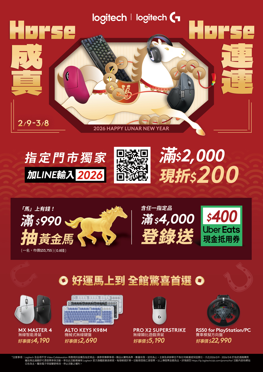 ★全通路全品項(不含Video Collaboration商務視訊設備)消費滿 $990 (折價後),登錄抽黃金馬(0.8錢/市價$33,755)