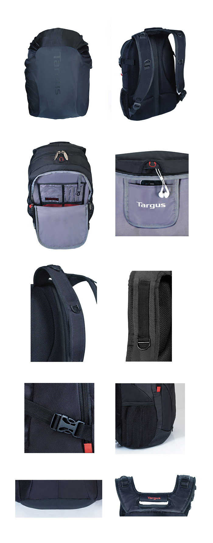 Targus Terra TSB226 採用輕量化設計,頂置耳機孔、及配附防雨罩,為通勤族提供最佳解決方案。